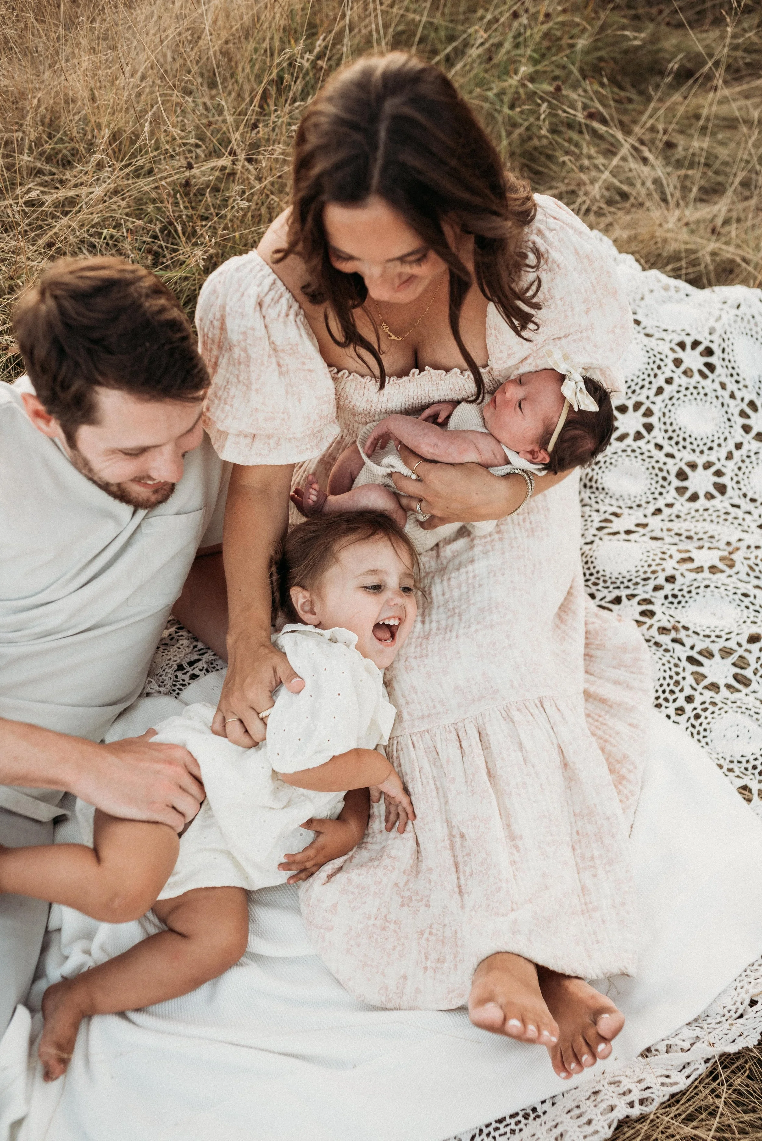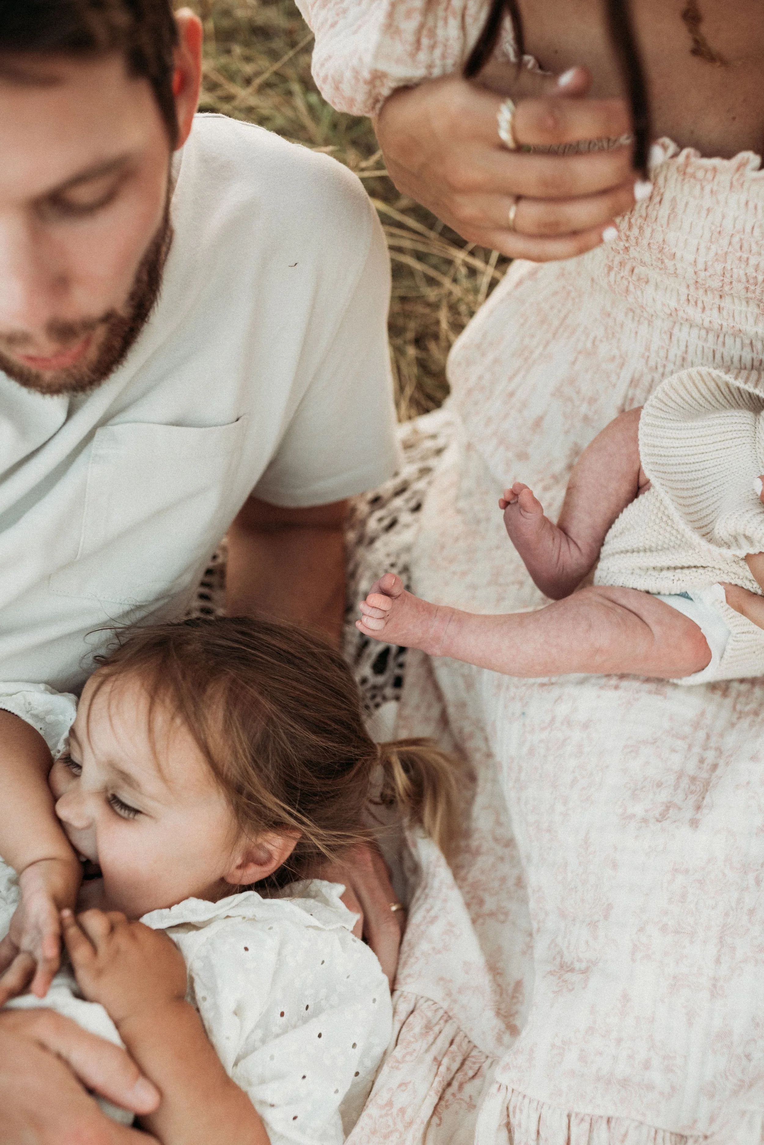 This sweet family has been in front of my camera before when little Grey was born. This time I had the joy of documenting their story again as they welcomed baby Hattie. Watching these two sisters together was the sweetest thing, Grey already adored her new baby sister! We strolled through the evening light, snuggled uo ona blanket, and even captured a few classic bucket shots.
